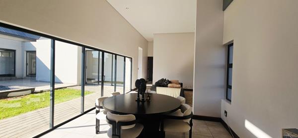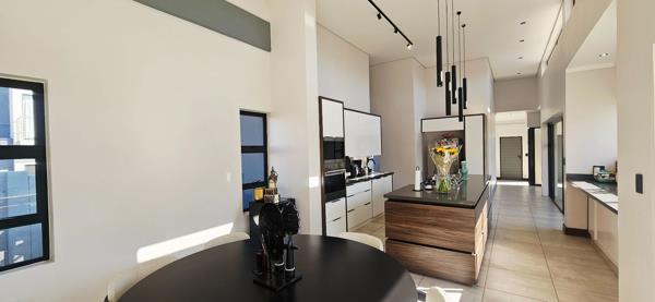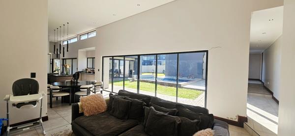 From the moment you enter, you are greeted by light-filled interiors and a seamless open-plan layout that connects the contemporary kitchen, dining area, and expansive living spaces. The heart of the home is undoubtedly the gourmet kitchen, complete with a separate scullery and sliding doors that open out to the garden and sparkling pool.