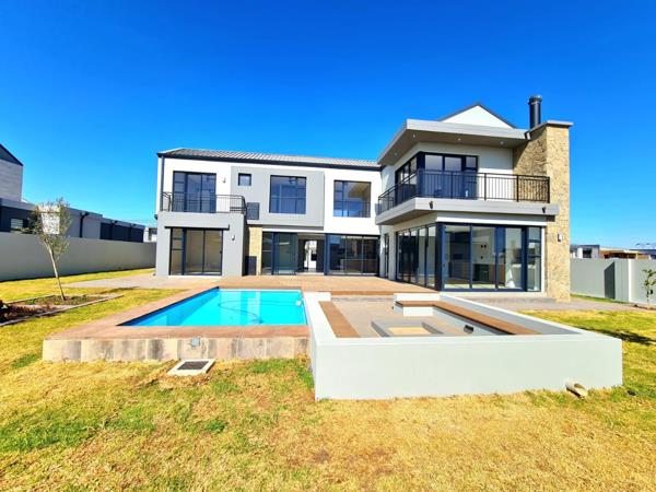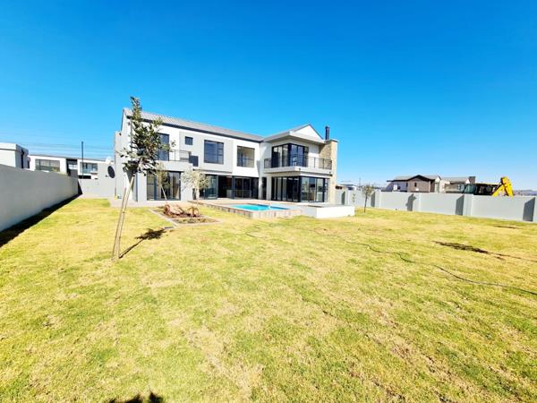 Designed for luxurious family living, this home offers high-end finishes and a spacious, well-thought-out layout. The open-plan kitchen, lounge, and dining areas flow effortlessly into an L-shaped entertainment space with a built-in braai, seamlessly extending to the outdoor boma and sparkling swimming pool.