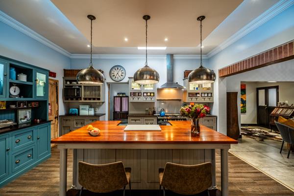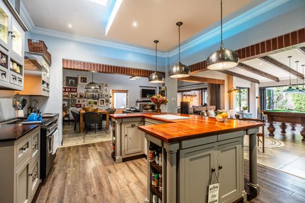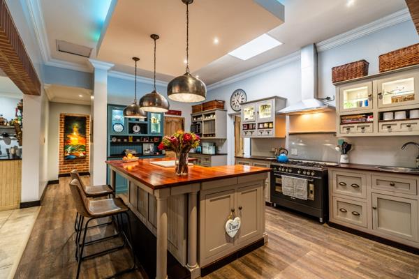 The bespoke kitchen is a culinary masterpiece, featuring a generous breakfast island, gas stove, walk in pantry, and a scullerylaundry.