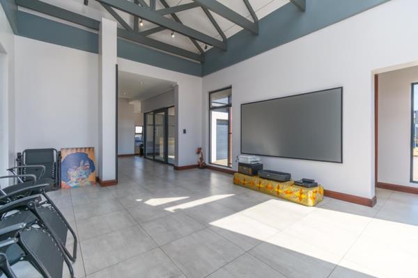 Epitome of Elegance - U-Shaped Family home. This aesthetically perfect U-shaped family home on a large 1120m2 stand, blends style, comfort, and functionality in an irresistible package. Offering 4 spacious bedrooms, three of which feature luxurious en-suite bathrooms all with both bath and shower, this home offers the ultimate in privacy and relaxation. The master bedroom offers a cozy and relaxing ambiance with exposed roof trusses, walk in closets and a luxurious full ensuite bathroom. Two inviting lounges, one enhanced by a cozy fireplace, along with a TV lounge and elegant dining area create the perfect flow for family living and entertaining. At the heart of the home lies an open-plan, ultra-modern kitchen with sleek finishes, complemented by an adjacent scullery for effortless organization. The homes striking design opens onto a central outdoor courtyard, accessible from all sides by sliding doors, where a sparkling swimming pool forms the focal point for leisure and gatherings. A private study offers a quiet retreat for work or study, while energy-efficient features including solar panels, an inverter and 5KVA battery system ensure comfort and sustainability all year round. The property is located in Midstream Meadows one of the eight estates which are part of the greater Midstream Estate, one of the leading Life Style estates in the region, known for its excellent security, top level schools, 2 shopping centers and several great restaurants. Good sporting opportunities like a 9 hole golf course, driving range, indoor swimming pool, gym, indoor action sport center and a Paddle court are available to all residents. Furthermore you will find a retirement village, medical center and a top of the range Medi Clinic and several churches. Located close to major highways, airports, half way in between Johannesburg and Pretoria. Call me for a viewing appointment today!