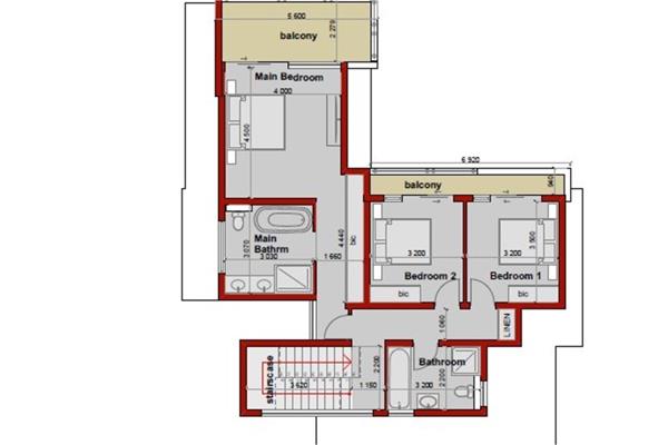 3 Upstairs al with Balconies an Built-in Cupboards.