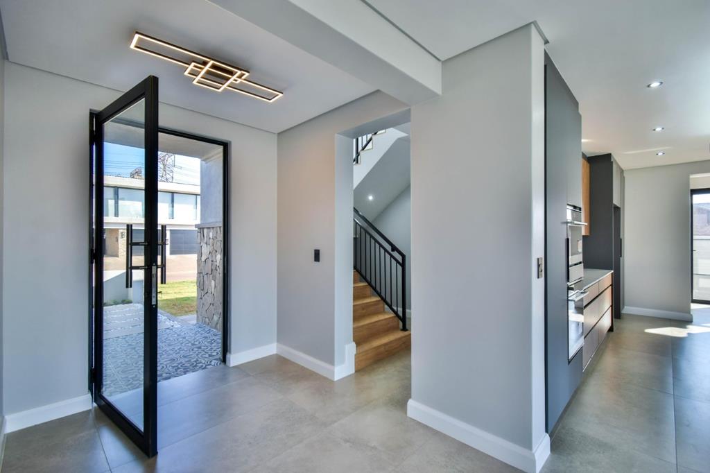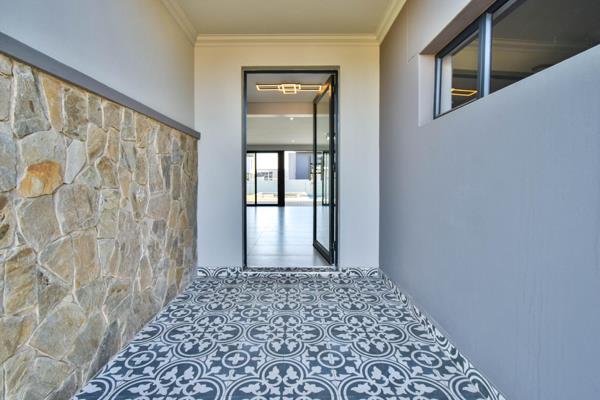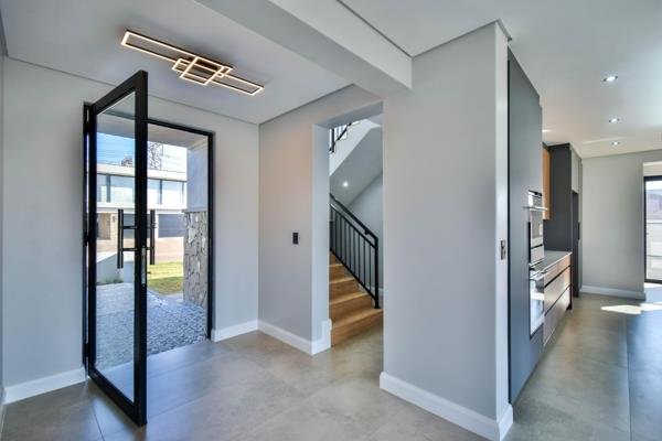 The living and dining areas exude sophistication, enhanced by natural light and modern touches throughout. Sliding doors open to a superb entertainment area with a built-in braai, overlooking the garden. Upstairs, a pajama lounge offers a cozy retreat, while a private study downstairs provides the ideal space to work from home.