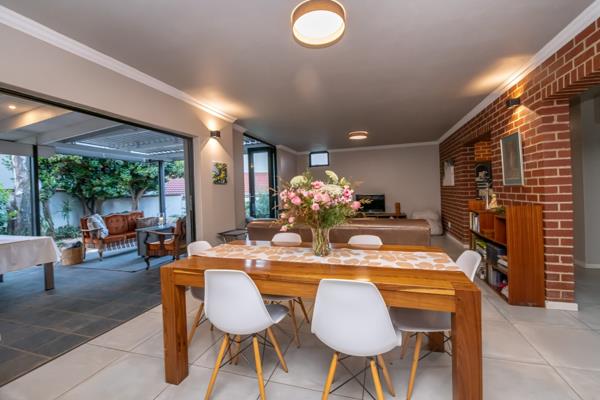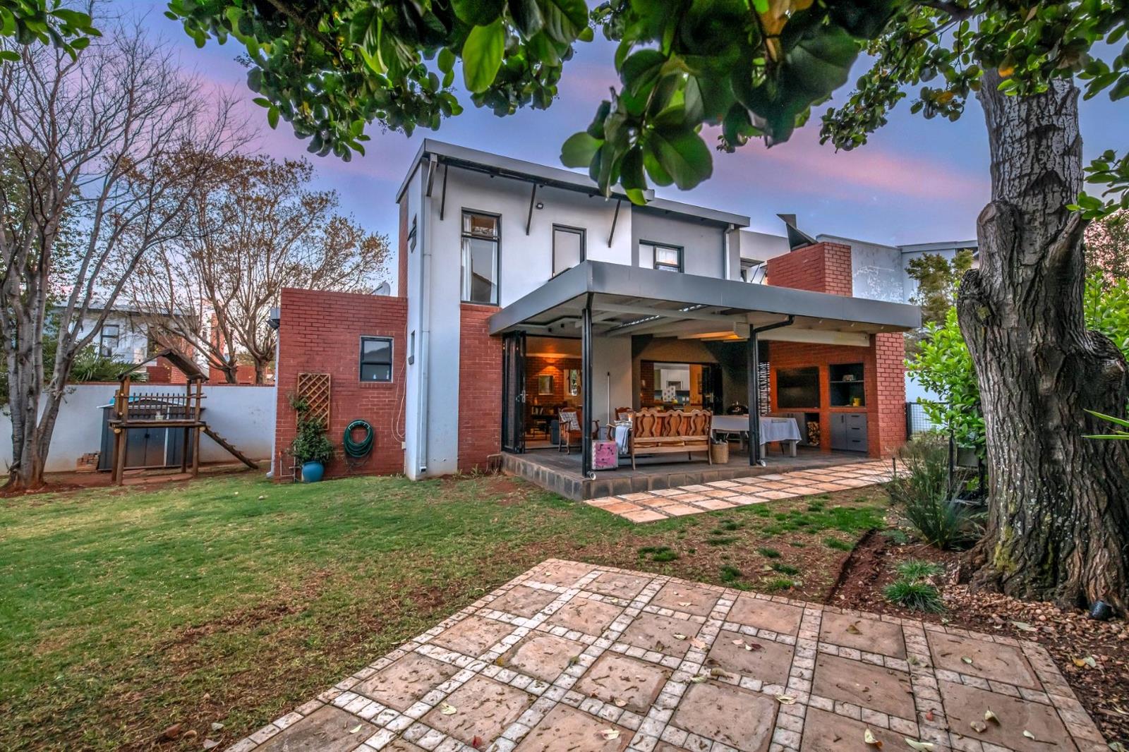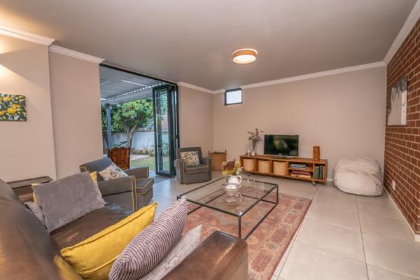 - Large patio with built-in braai and adjustable louvre roof, flowing seamlessly into a beautifully established garden ideal for relaxing or hosting friends.