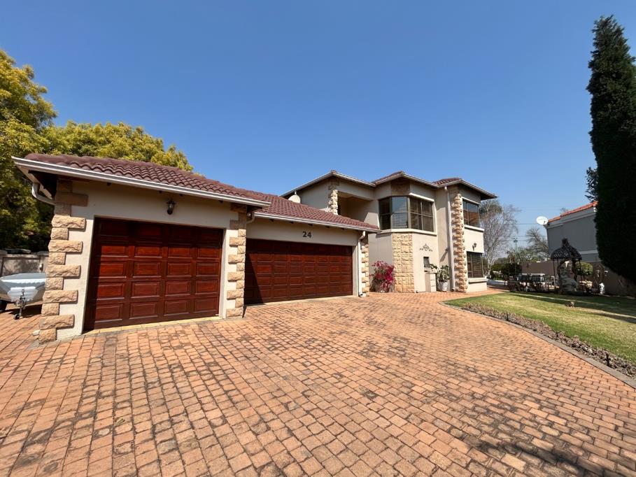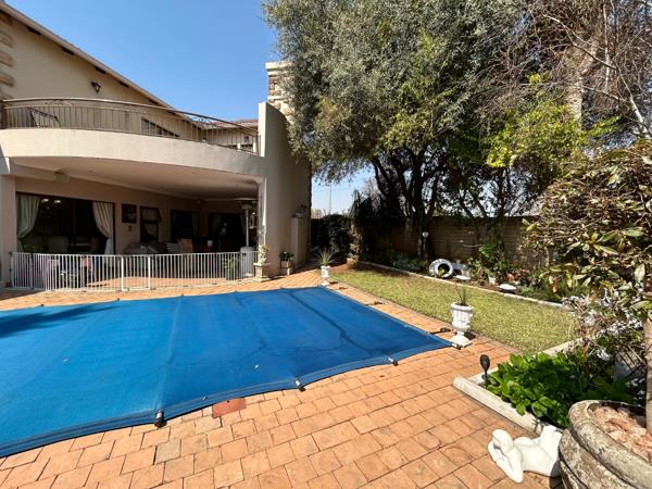 The ground floor boasts generous living areas including a bright lounge, elegant dining room, and a stylish kitchen with pantry and separate scullery. A comfortable guest suite with private bathroom, along with a full domestic quarters, ensures flexibility for visiting family or live-in help.