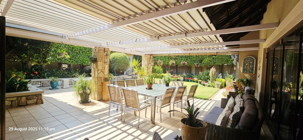 Entertainment and leisure are well catered for, with a covered patio and built-in braai overlooking the lush, irrigated garden. A versatile pool room provides further flexibility, equally suited as a study, games room, or home office.