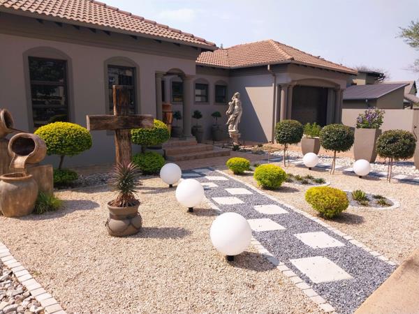 Single level 4 Bedroom House in Midlands Estate. The ultimate family home with staff room, inverter, central vacuum system, underfloor heating and garages large enough to fit any vehicle.