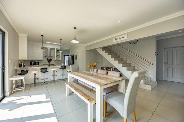 Upstairs, the luxurious main suite offers a serene retreat, complete with a private balcony, generous cupboards, and a full en-suite bathroom featuring double vanities, bath, and shower. Two additional bedrooms, each with their own balcony, provide space, light, and comfort for the entire family. With double automated garages, a solar geyser for energy-efficient living, and the peace of mind of 24/7 estate security, this home offers a secure, family-friendly lifestyle within easy reach of top schools, shopping, and healthcare. Dont miss the opportunity to make this exceptional residence yourscontact us today to arrange your exclusive viewing