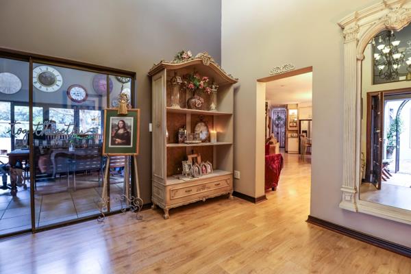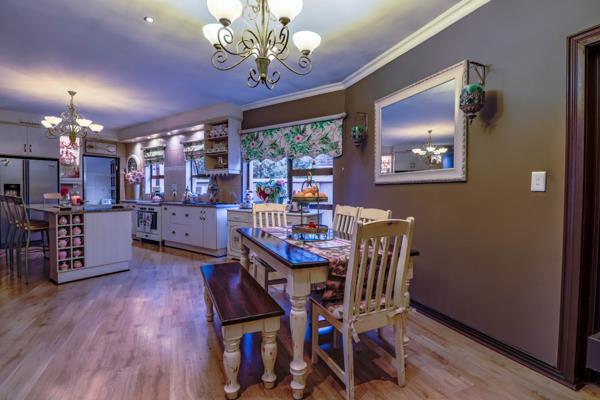 - Covered patio with a built-in braai, opening with aluminum stacker doors onto a beautifully manicured garden.