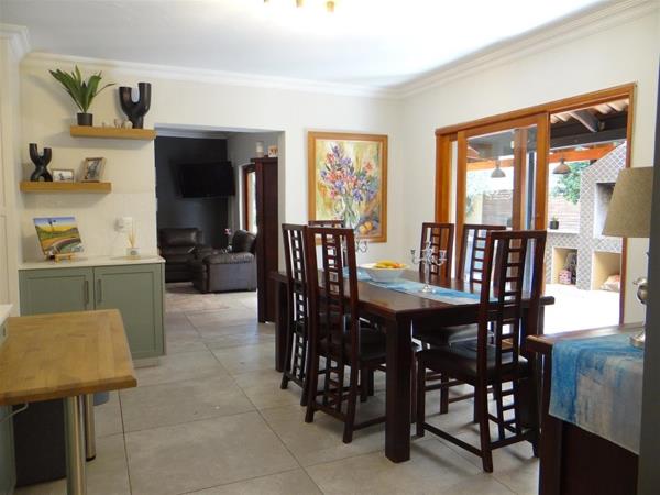 Covered entertainment area with built-in braai overlooking the swimming pool making it ideal for entertaining