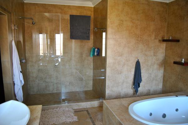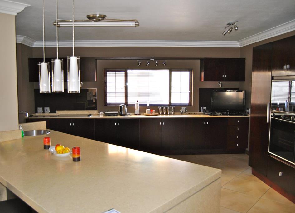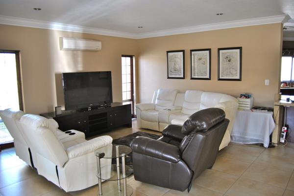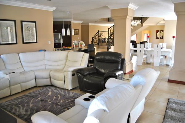 VIEWINGS BY APPOINTMENT ONLY -SPACIOUS 5-BEDROOM FAMILY HOME WITH STUDY, POOL, 4 GARAGES & STAFF ACCOMMODATION WALKING DISTANCE TO SCHOOL IN MIDSTREAM ESTATE Step into a grand, light-filled entrance that opens to an expansive open-plan living area, combining the lounge and dining spaces complete with a pool table, air conditioning, and a cozy fireplace. The enclosed entertainment area seamlessly connects to the patio with a built-in braai, perfect for hosting friends and family. The modern granite kitchen offers a breakfast counter and a separate scullery with ample space for multiple appliances. Two well-sized bedrooms on this level open directly onto the garden and can easily be used as offices or a playroom. A full bathroom completes the ground floor.
