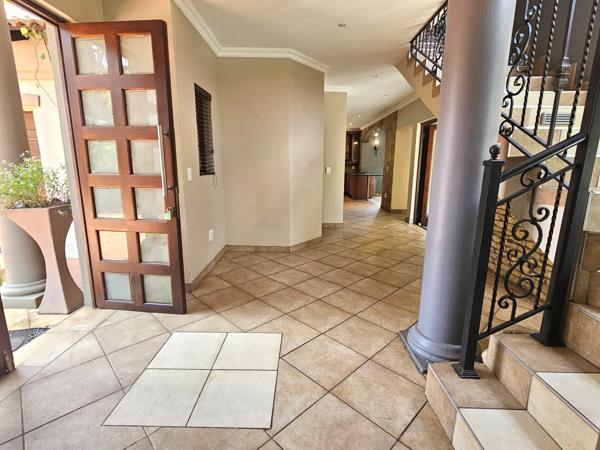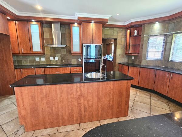 It has an inviting entrance hall, lounge, dining room, open and airy family room, a striking kitchen with top class finishes, a breakfast nook, pantry and separate scullery, 5 delightfully detailed bedrooms each room with its own unique features and has plenty of sunlight coming through the large windows, 3 bathrooms and a guest toilet, double garage, an en-suite staff quarter and so much more!!