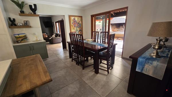 Beyond the interior, the property extends its allure to a spacious 1169 sqm erf, featuring a large covered outdoor patio with a dedicated outdoor braai area perfect for entertaining. The well-maintained garden, complete with a sparkling pool promises endless outdoor enjoyment.