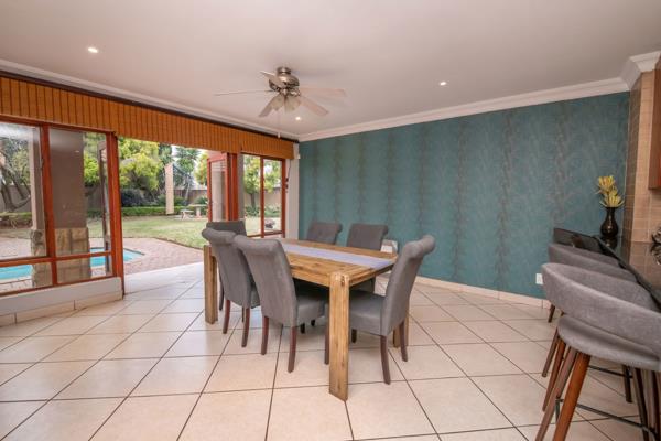 Entertain with ease on the covered patio overlooking the sparkling swimming pool, while the dedicated pool house with its built-in braai, bar and prep space offers the perfect setting for summer memories. The private garden, adorned with beautiful mature trees, provides room to play, dream, and breathe.