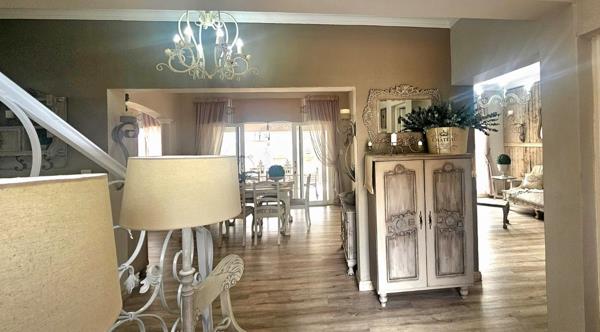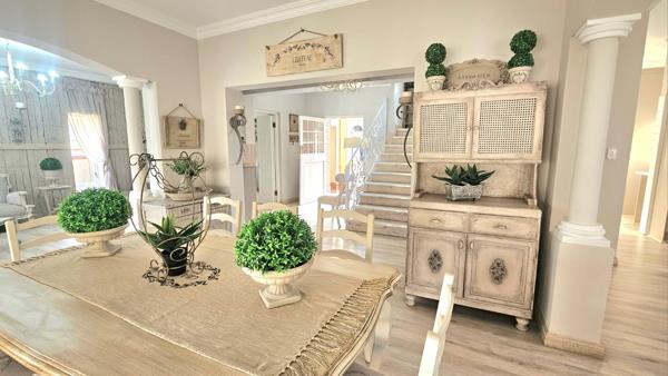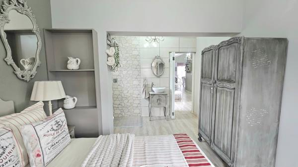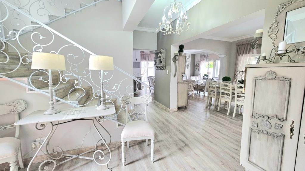 Downstairs, three expansive living rooms flow with ease, creating an inviting setting for gatherings, quiet evenings, or work-from-home days. A beautifully private en-suite bedroom on this level offers flexibility for guests, extended family or a serene ground-floor retreat. The undercover patio extends from the living spaces and features a built-in braai, overlooking a charming, waterwise garden designed for low-maintenance outdoor enjoyment.