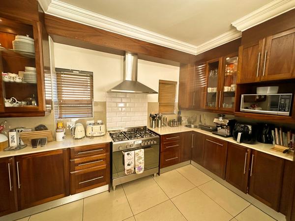 - The modern kitchen features a walk-in pantry and a separate scullery with space for three appliances.
