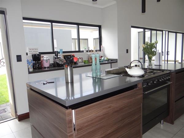 Modern U-Shape Single Storey 4 Beroom home in Midstream Meadows with Quality finishes. Situated on a large Corner stand of 1121m2. Aesthetically laid out for Entertainment but also allowing family privacy.