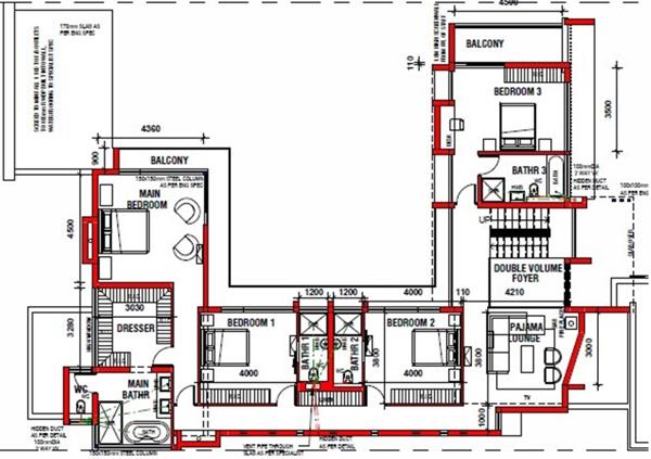 4 Bedrooms with Built-in Cupboards, En-Suite bathrooms and balconies.