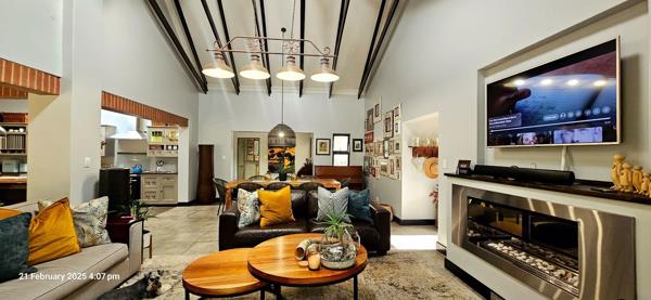 The entertainment offering is exceptional. A built-in braai and stylish bar area open onto a lush, landscaped garden, encouraging an easy transition between indoor comfort and outdoor leisure. The design invites light, air and greenery into every corner, enhancing the homes sense of calm and connection.