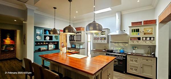 At the centre of it all, the farm-style kitchen commands attention. A substantial breakfast island anchors the space, complemented by a gas hob, electric oven and an impressive walk-in pantry. The adjoining scullery and laundry room allow the kitchen to remain pristine while daily life continues effortlessly behind the scenes. Whether entertaining on a grand scale or enjoying quiet family dinners, this space rises to every occasion.