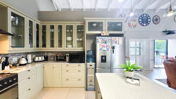 Beautifully light-filled and designed for effortless living, this solar-powered family home offers spacious open-plan living areas with exposed beam ceilings and seamless flow to a covered entertainment patio with a built-in braai.