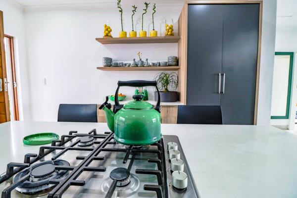 The home also includes a double automated garage, providing secure parking and additional storage space. Additional features include a solar system with four panels, a Growatt 5kWh inverter with 4.48kWh batteries, a gas geyser, 20 Mbps WiFi MetroFibre included, and garden services.