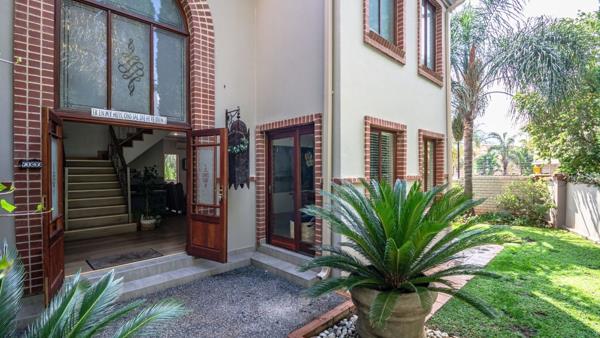 Both the kitchen and family lounge open onto a beautiful entertainment patio designed with hosting in mind. The patio includes convenient counter space and a built-in braai, creating the perfect setting for relaxed afternoons and weekend gatherings. From here, the space flows out to a spectacular solar-heated swimming pool surrounded by established trees, offering a peaceful and private outdoor escape.