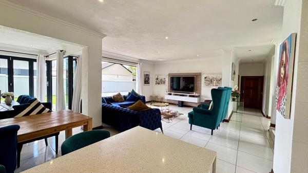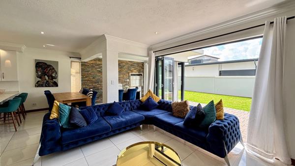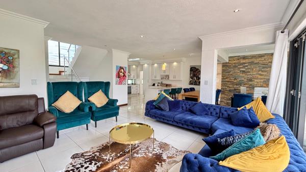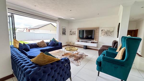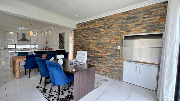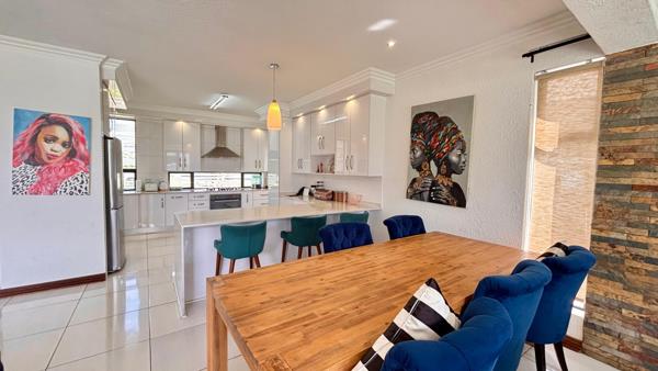 Situated in a safe and secure estate, this inviting double-storey home welcomes you with a light, homely entrance and open-plan living and dining areas. The modern kitchen with white finishes flows into the dining room and opens to the indoor braai area for seamless entertaining. A downstairs ensuite bedroom and a guest toilet add convenience. Upstairs, three bedrooms share a full bathroom, while the main bedroom boasts a walk-in closet, ensuite bathroom, and air conditioning. A comfortable, well-appointed home perfect for family living.