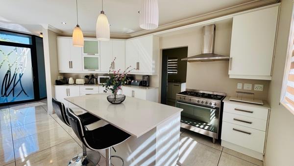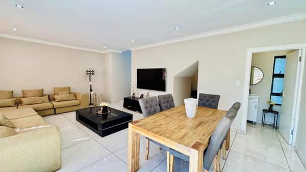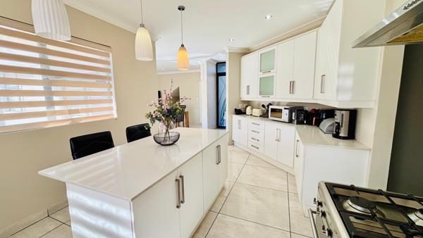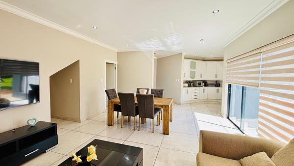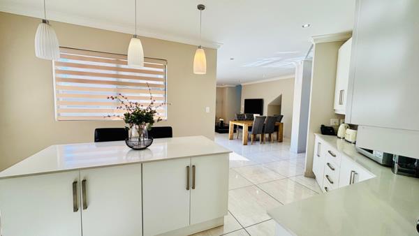 Upstairs, youll find three well-appointed bedrooms. The main bedroom features built-in cupboards and a private en-suite bathroom, offering a peaceful retreat. The two additional bedrooms are bright and comfortable, sharing a modern family bathroom.