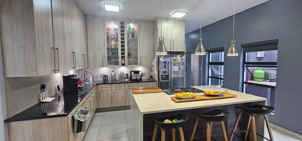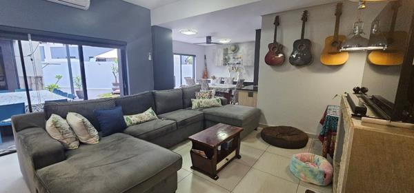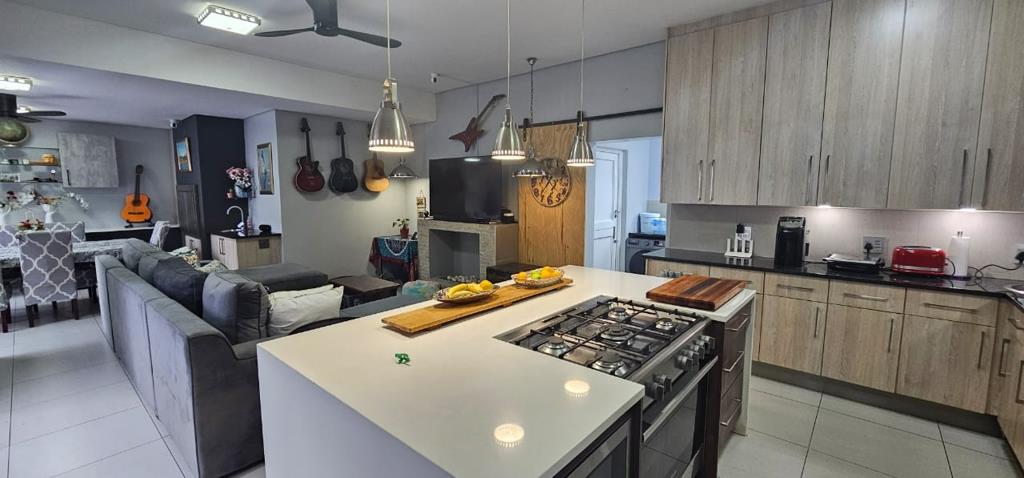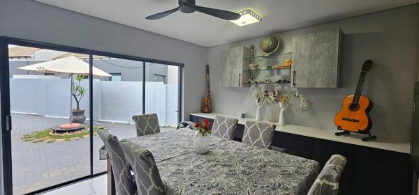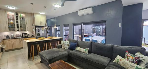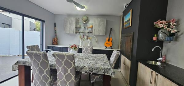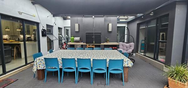 Entertainment is a highlight with an indoor gas braai, perfect for year-round gatherings, and an outdoor entertainment area complete with a traditional wood braai, ideal for enjoying the private garden. Practical features include a double garage with direct access, air conditioning, solar panels for energy efficiency, and an irrigation system. Located within a secure estate with 24-hour security, this 214 sqm home on a 550 sqm erf combines style, practicality, and superb entertainment features, including versatile work-from-home capability.