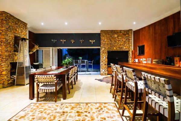 - Impressive entertainment space with built-in braai, complemented by stylish wooden panelling.