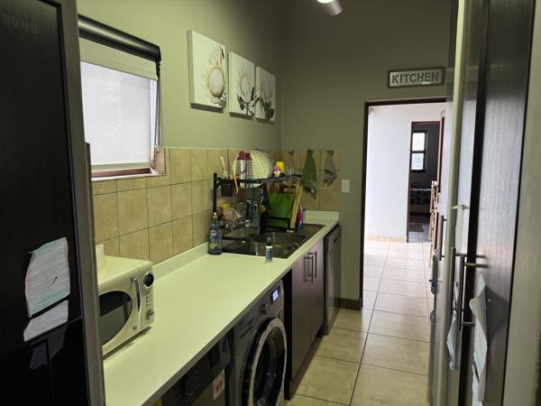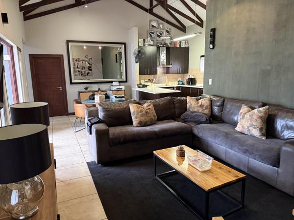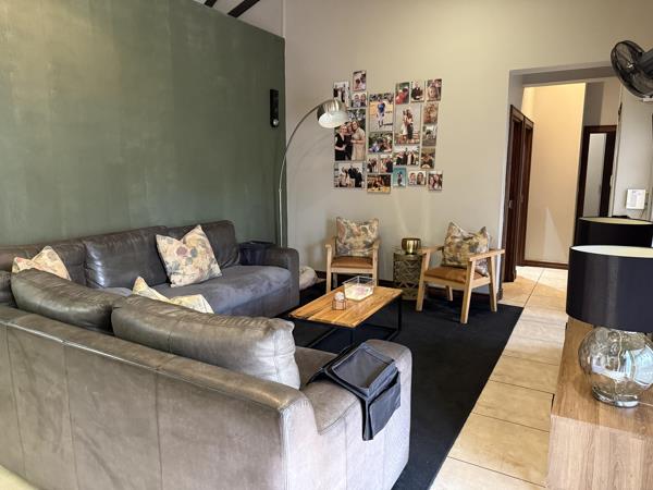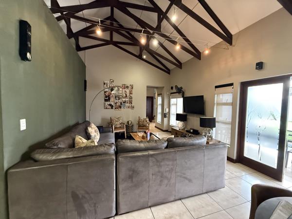 The living space extends naturally to a generous covered patio, overlooking a meticulously manicured garden kept lush by an automated irrigation system. Socialites will be drawn to the bespoke boma area, which features a built-in pizza oven designed for unforgettable evenings under the stars. This property is an ideal match for those seeking an effortless lifestyle. It is a rare find that combines the security of estate living with the soulful feel of a rustic retreat.