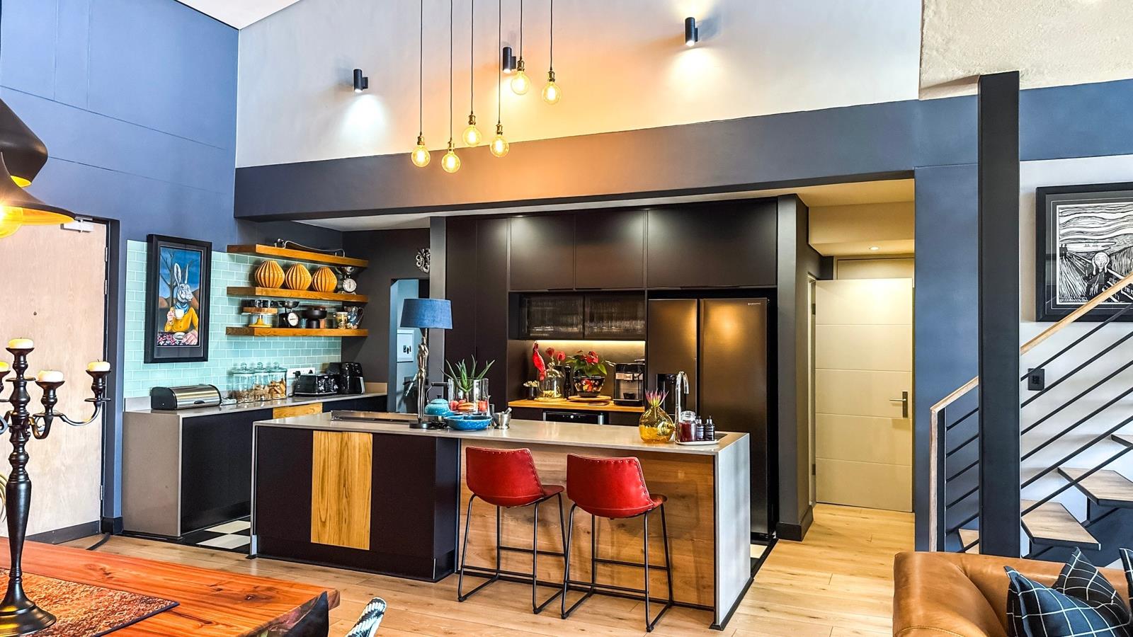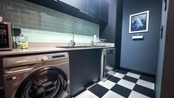 Designer kitchen newly renovated, ultra-modern with sleek black finishes and impressive counter space