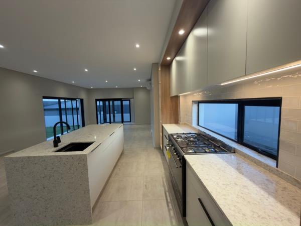 Open-Plan Living Areas Dining room, lounge, and kitchen flow seamlessly onto a covered patio with a built-in braai.