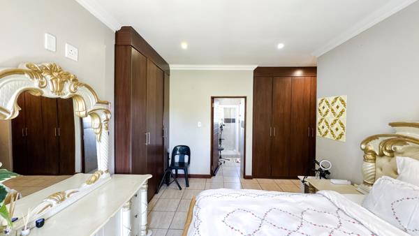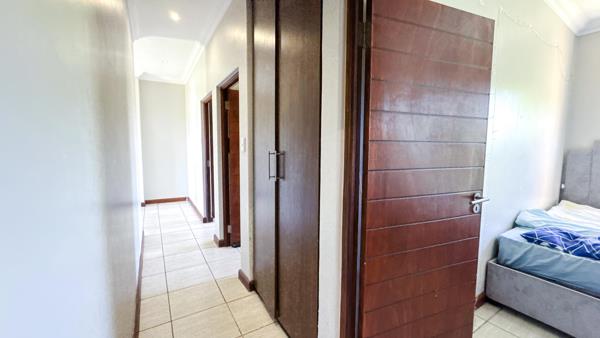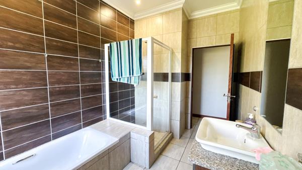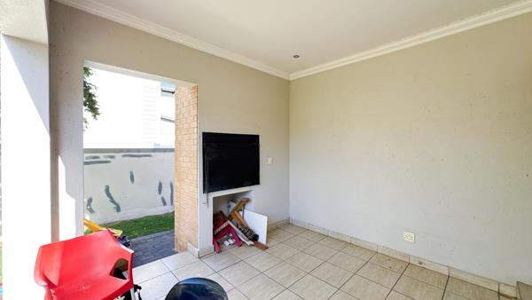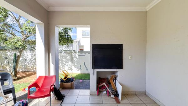 A covered patio with a built-in braai extends the living space outdoors, perfect for relaxed gatherings. The home also features a practical kitchen with a separate scullery, providing convenience for everyday living.