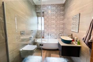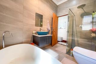 This beautiful home- Offers 3 Bedrooms with 3 bathrooms, open plan living areas, private lounge. beautiful kitchen with a separate scullery. Patio with a fireplace that opens up onto the swimming pool. Staff toilet and basin. 2 Garages.
