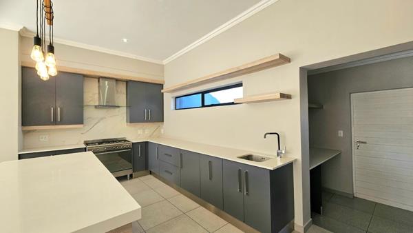 -Modern Kitchen with ample cupboards, breakfast nook/centre island and a separate scullery towards the back.