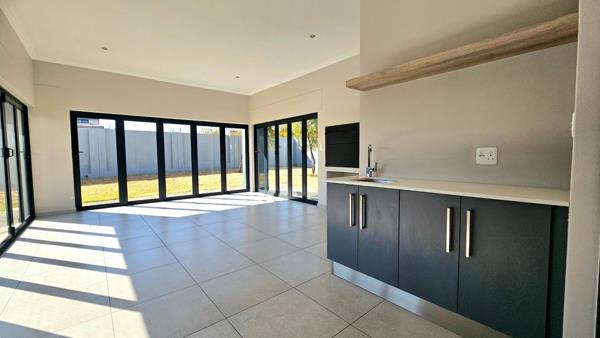-Big Indoor Patio opening with stacker doors, connecting the outside with the inside, complete with a built-in braai and counter area.