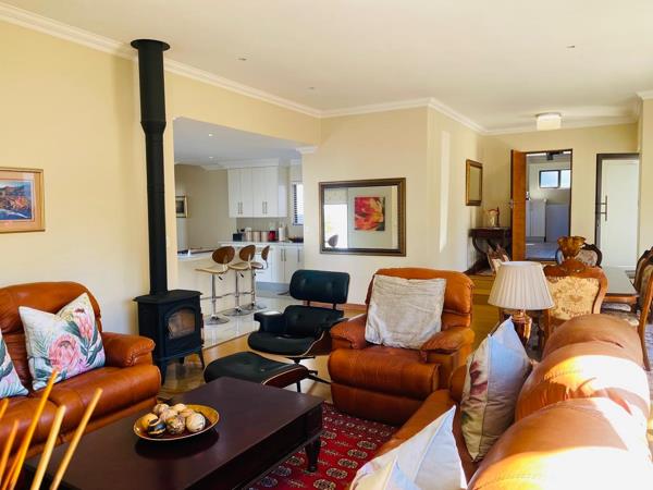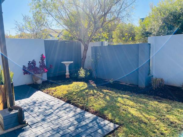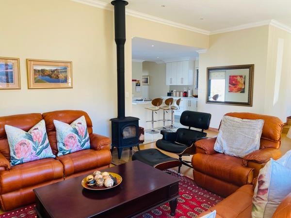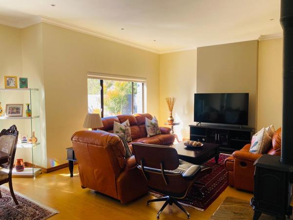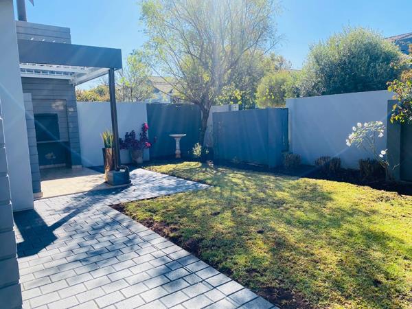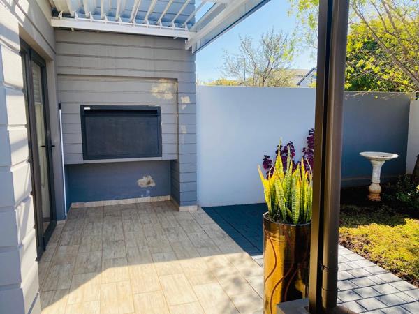 The dining area leads to the outside patio which has stacking doors. The patio has a built in braai great for entertaining and guests can enjoy the tranquil garden.