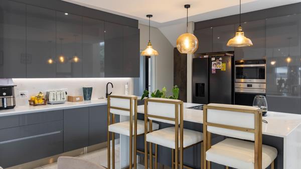 Spacious Open-Plan Design: Kitchen with gas hob island, two ovens, and separate scullery.