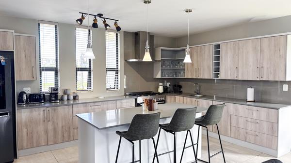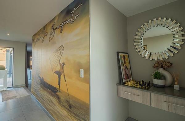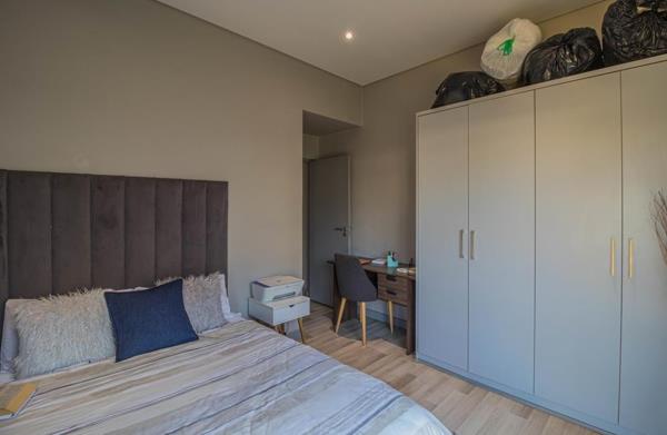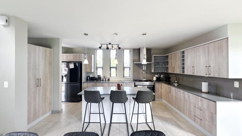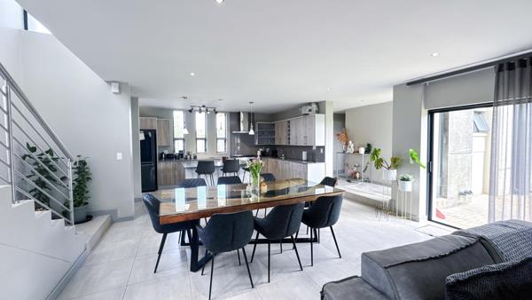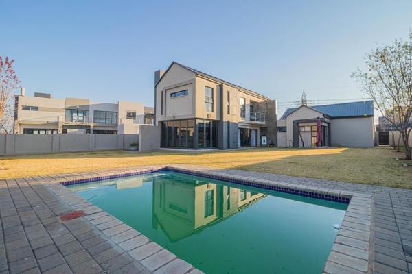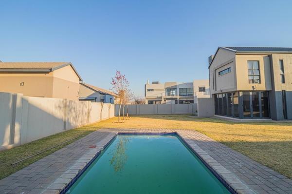 Step outside to the enclosed braai room with a built-in braai, ideal for year-round BBQs. The expansive private garden and swimming pool offer a tranquil oasis to unwind after a long day.