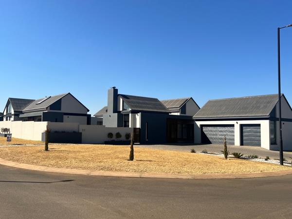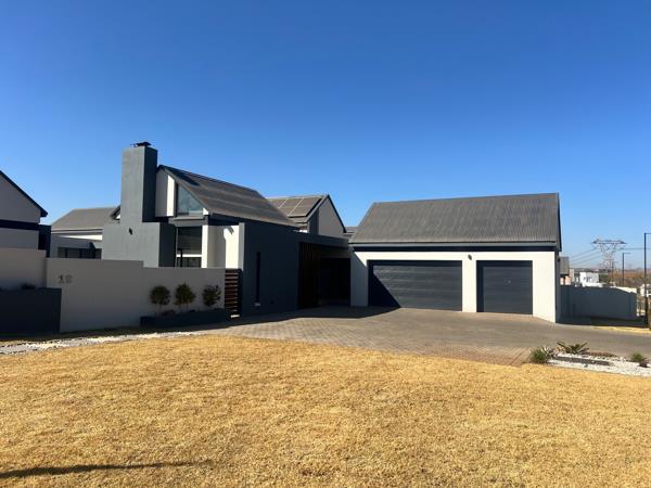 This new U-shape home is very private and offers a luxury comfortable living with 4 spacious bedrooms, 3 with en-suits, main with large walk-in cupboard. Open plan kitchen, dining & living room, separate scullery, separate guest bedroom and guest bathroom, separate entertainment, separate study, separate staff quarters with en-suite, large pool with built-in BOMA & fire pit and 3 garages.