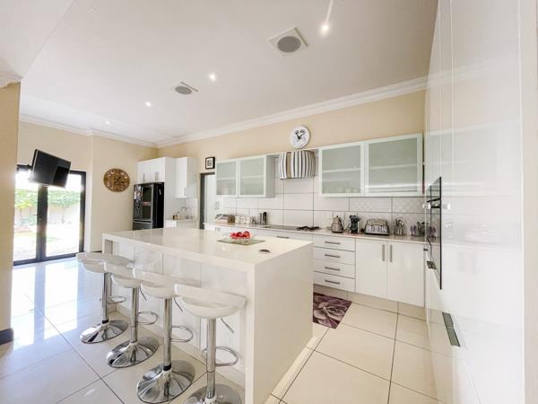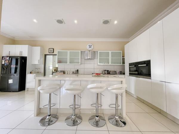 The property offers so much style, elegance, and abundance when you enter with a Double staircase to the top floor. The house has a modern open-plan Weitzer kitchen with Miele appliances. This includes a dual induction electric stove, gas hob, and a huge island that also serves as a breakfast nook. There is a separate scullery and laundryironing room. The house is off the grid, equipped with an 8 kW Inverter, 6 batteries with 16 Solar panels generating 37 kW daily, and gas geysers that make your life easier.