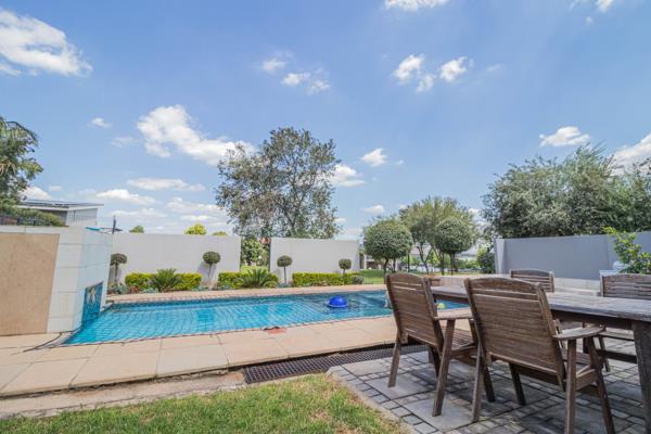 The indoor Patio with built in braai Dining room area and Built-in Bar area makes all year entertainment a pleasure. The sliding doors open onto the landscaped garden with a sparkling pool, jacuzzi, boma entertainment area and a view of the adjacent beautiful park.