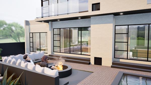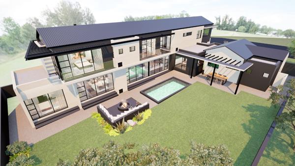 A welcoming covered entrance leads you to the foyer, where you''ll find walking doors to the garages, two on each side, making a total of four garages, and a study or office nearby. As you proceed to the right-hand side of this El-shaped plan house, you''ll be greeted by a massive open living area, complete with a modern kitchen, scullery, dining area, living area, entertainment area, and an ensuite guest bedroom.