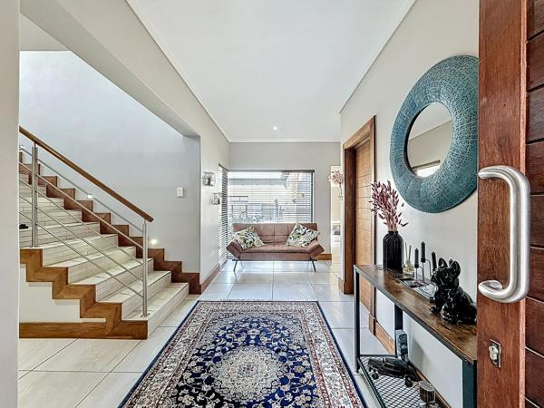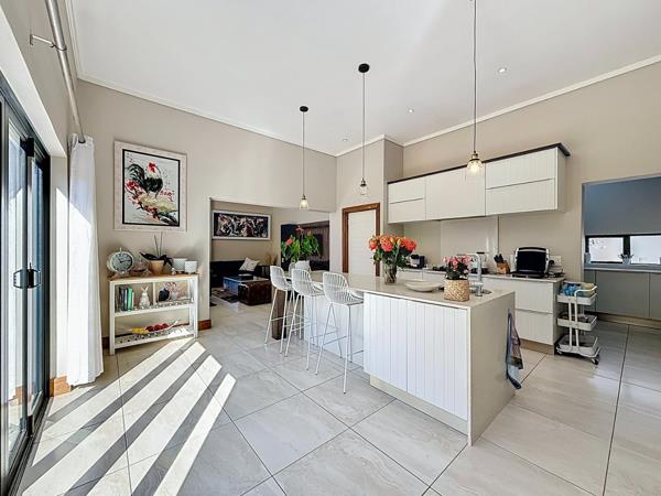 From the moment you walk in, youre greeted by soaring ceilings, expansive open-plan living areas, and natural light that pours in through large glass panels. The gourmet kitchen is a statement on its own beautifully finished with high-end materials, a separate scullery, and effortless flow into your indoor entertainment lounge with built-in braai.