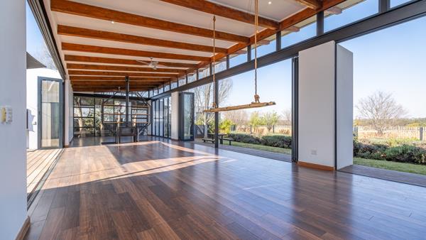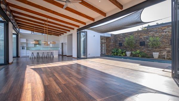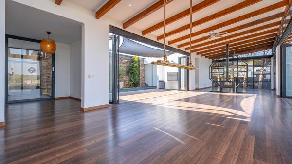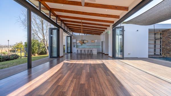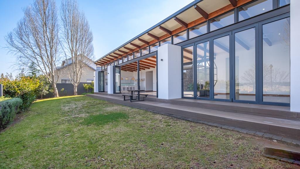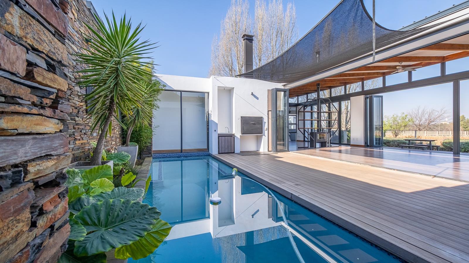 Elegant Single-Level Home on the Green Belt in Midstream Ridge. Nestled in the sought-after Midstream Ridge Estate and set along the tranquil green belt, this beautiful single-level 4-bedroom home offers modern comfort, seamless indoor-outdoor living, and exceptional privacy. The heart of the home features expansive open-plan living areasincluding a dining room, lounge, TV room, and kitchenall opening up with large sliding doors to both the lush garden and a sparkling swimming pool with wooden deck and built-in braai area. A cozy fireplace adds warmth and charm to the main living space, while the garden provides direct access to the green belt for peaceful outdoor enjoyment. The well-appointed kitchen comes with a large center island, white granite counter tops, ample cupboard space, a built-in eye-level oven, and a gas stoveperfect for entertaining. A separate scullery/laundry with a walk-in pantry ensures functionality and convenience. Three bedrooms are situated in one wing of the house. The spacious main bedroom offers air conditioning, stacking doors that open to the garden, extensive wardrobe space, and a full ensuite bathroom. The additional two bedrooms each feature their own ensuite bathroom and are fitted with either a ceiling fan or air conditioning. A private guest suite with its own ensuite bathroom is located at the opposite end of the home, providing an ideal space for visitors or extended family, alternatively this room can be used as a study. Additional highlights include a large double garage with extra storage space, making this a truly versatile and luxurious family home in one of Midstreams premier locations. Call me to book a viewing appointment.