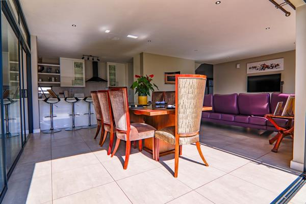 Sole-Mandated. This neat and well-planned double-storey home is perfectly located in Midstream, just off Korhaan Road and near the exciting new shopping centre development. It offers 3 spacious bedrooms, 2 full bathrooms upstairs main en-suite, and a guest toilet downstairs. There&rsquos also a large linen cupboard upstairs with potential to convert into a fourth room or study. The modern kitchen includes a Smeg gas stove and oven, a scullery with space for three undercounter appliances, and stacker doors that open up the dining area and sunny enclosed patio to the garden. Staff quarters with a private bathroom are also included, making this a practical choice for families. Outside, you&rsquoll find 3 garages, parking for up to 6 cars, and gates on both sides of the home that can accommodate additional vehicles. A 3000L JoJo tank, full irrigation system, washing basins, and a neat garden complete the picture. This home is pet-friendly, functional, and in a very convenient part of Midstream.
