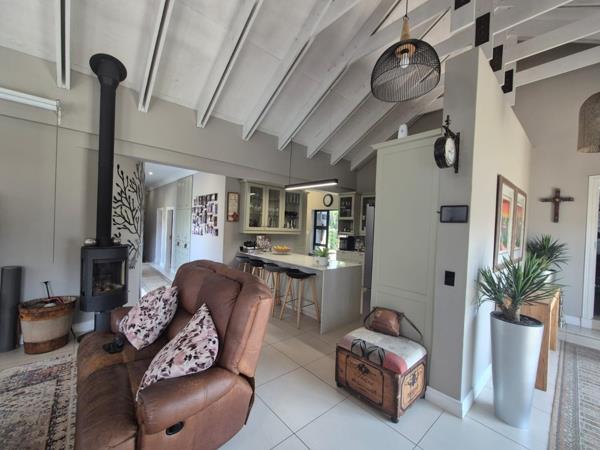 Entertainment area with built in braai, sliding doors on both sides, the perfect indoor/outdoor living experience