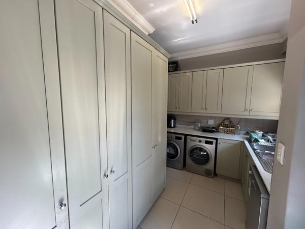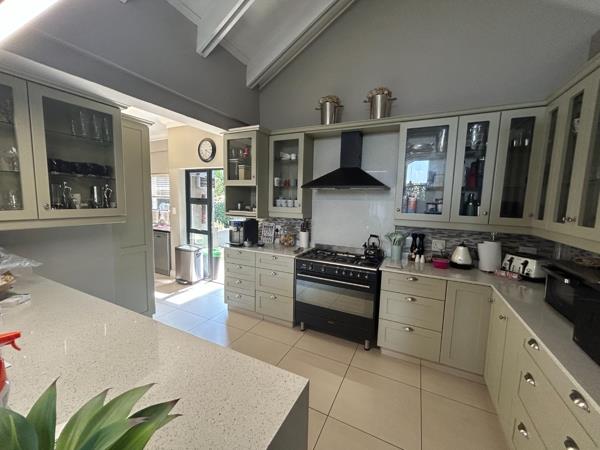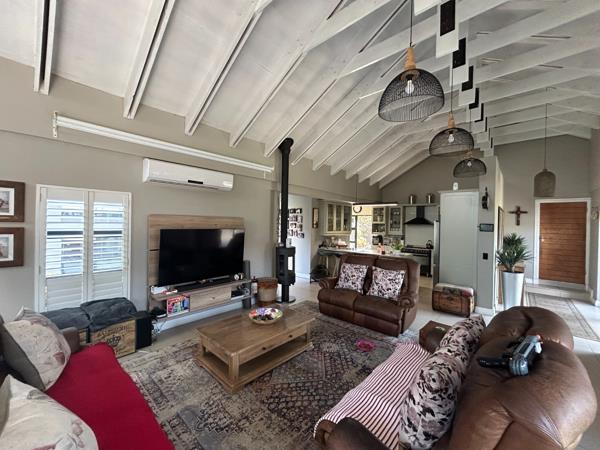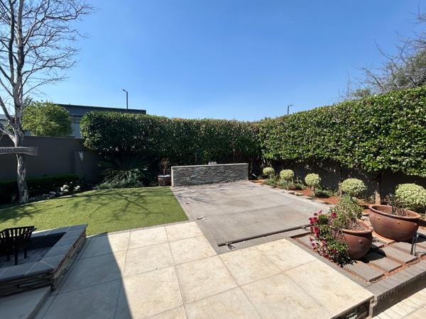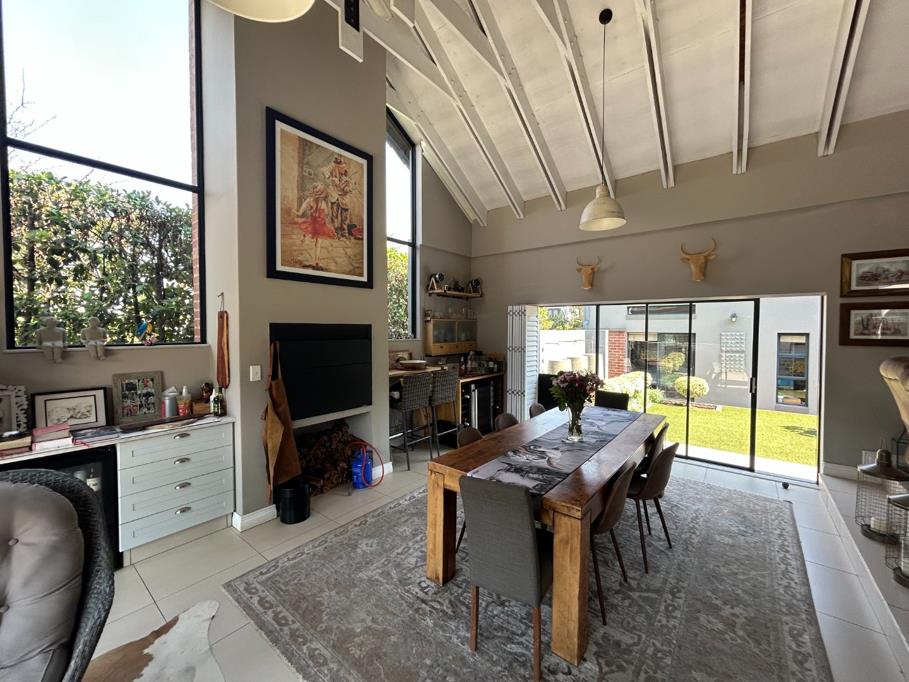 Designed for entertaining, the property boasts a built-in braai, air conditioning, and high-end finishes throughout. Outdoor living is equally impressive, with a heated pool, a charming fountain, and private landscaped gardens creating a serene retreat. Sustainability is seamlessly integrated with a solar system, ensuring energy efficiency.