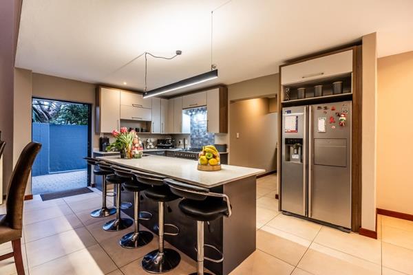 Spacious enclosed patio with a built-in braai and large sliding doors leading out to the beautiful garden and heated swimming pool the perfect space for hosting unforgettable gatherings.